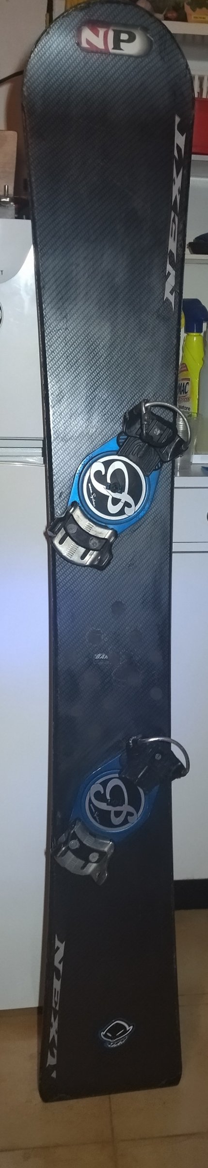 L'altro giorno ho usato la tavola 172 in carbonio è datata ha un po' di anni ma mi piace perché è talmente rigida che per il mio peso (107 kg) mi porta alla grande ... c'è scritto sulla coda Next e sulla punta NP