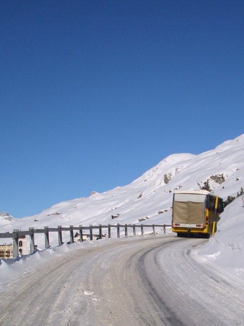 Beispiel Bild 2: Strasse um/über 2000 müM, ganzes Jahr geöffnet, während mehreren Monaten durchgehend schneebedeckt.