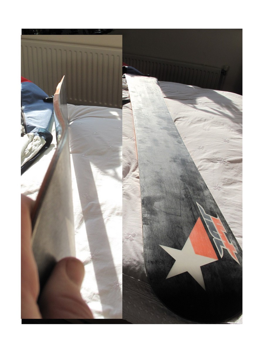 No idea?! This board was at our local ski shop and I'm selling it for the owner as a favour. He is selling it for a close friend. The Indy boots went to a carving mate. I'm looking to keep the bindings (F2 Titaniums). The board is seriously absolutely new. I did not even take it out for a spin in one of the indoor halls to see what its like. There are enough sticks in my quiver...