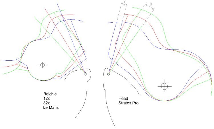 per l'ingombro, con scarponi numero 42 angoli 45 e 53 gradi l'intero sistema resta coperto con luce fino a 80 gradi.
