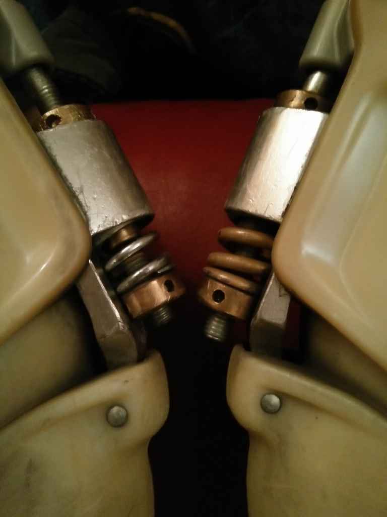 - la molla dx ha un diverso "offset" (non so se si dica così: voglio dire che i registri sia sopra che sotto sono avvitati di più sulla vite)