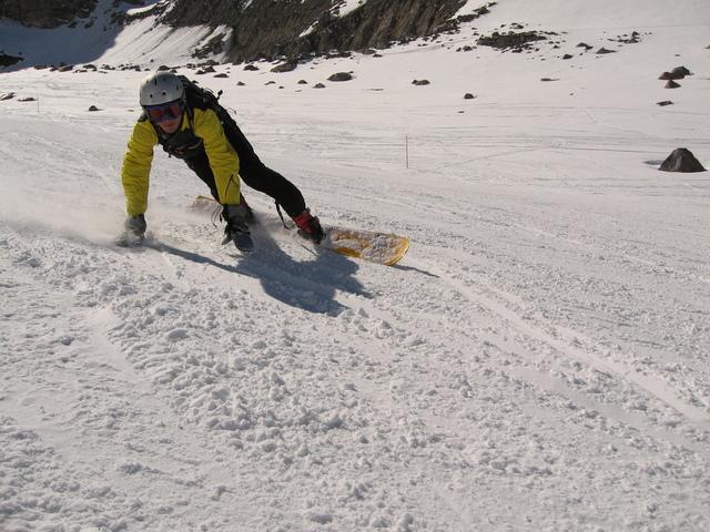 la tenuta in curva è buona sentivo una rassicurante tendenza a rimanere agganciato alla neve, complice la condizione della neve sul muro del ghiacciaio del Corvatsch