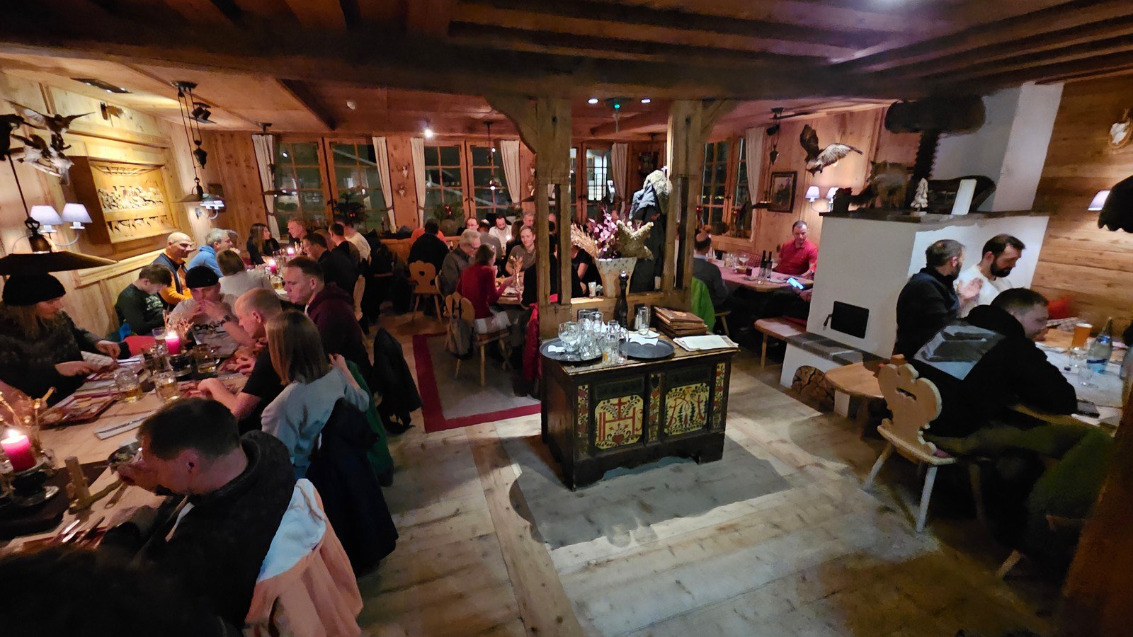 Abends beim Essen in der Bergfriedalm: mehr Teilnehmer als sich überhaupt für das Event angemeldet hatten.