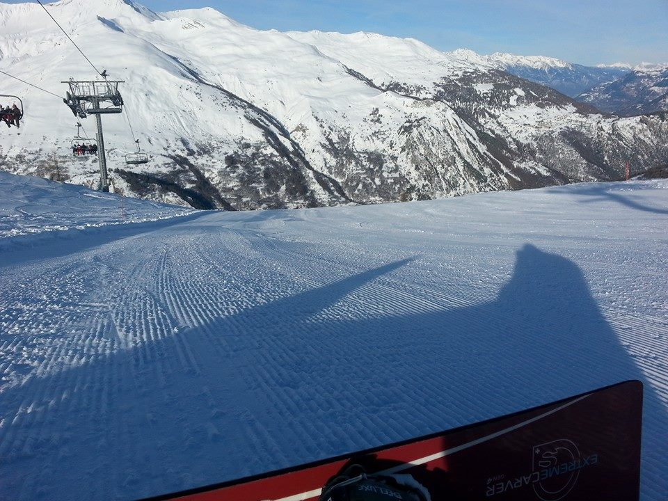 Des cailloux à la pelle coté Crey, mais carvable coté Setaz : neige à canons bien dure et pas de caillasse + pas trop de monde. Donc pas si catastrophique!