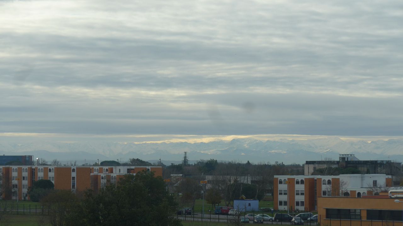 Les Pyrénées commencent à blanchir, ce matin depuis mon bureau: