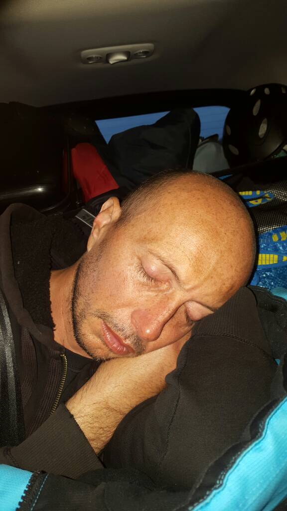 Endormi dans la voiture en rentrant du meeting de Courchevel, on peut se moquer il a eu un dimanche difficile. Victime d'un alcoolisme passif du aux vapeurs de bières consommées par ses colocataires.Image