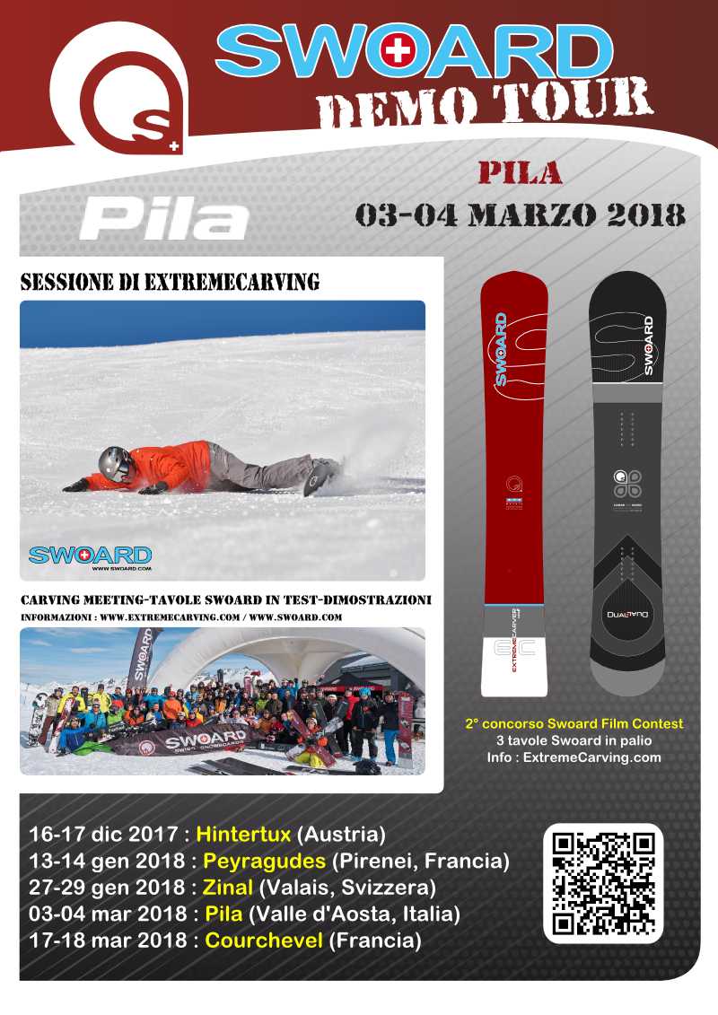 Swoard organizza la quinta tappa dello Swoard Demo Tour. Un evento interamente dedicato allo Snowboard, aperto a tutti: hardboot e softboot. Durante l'evento sarà possibile testare le Swoard Extremecarver Gen 5 / Extremecarver Pro e Dual 2, assistere a dimostrazioni di Extreme Carving, e perfezionare la propria tecnica.