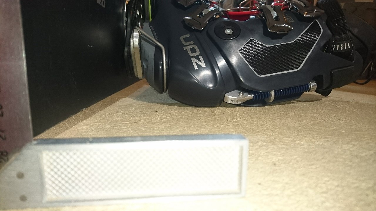 Si j'avais pris des Atomic en 27 leur semelle fait 298 mm soit 11 mm de plus que les coques essayées et 1 mm de moins que la coque préconisée par UPZ. Auxquels il convient de rajouter le bossage arrière et le système de ressorts, donc Atomic toujours plus courtes.