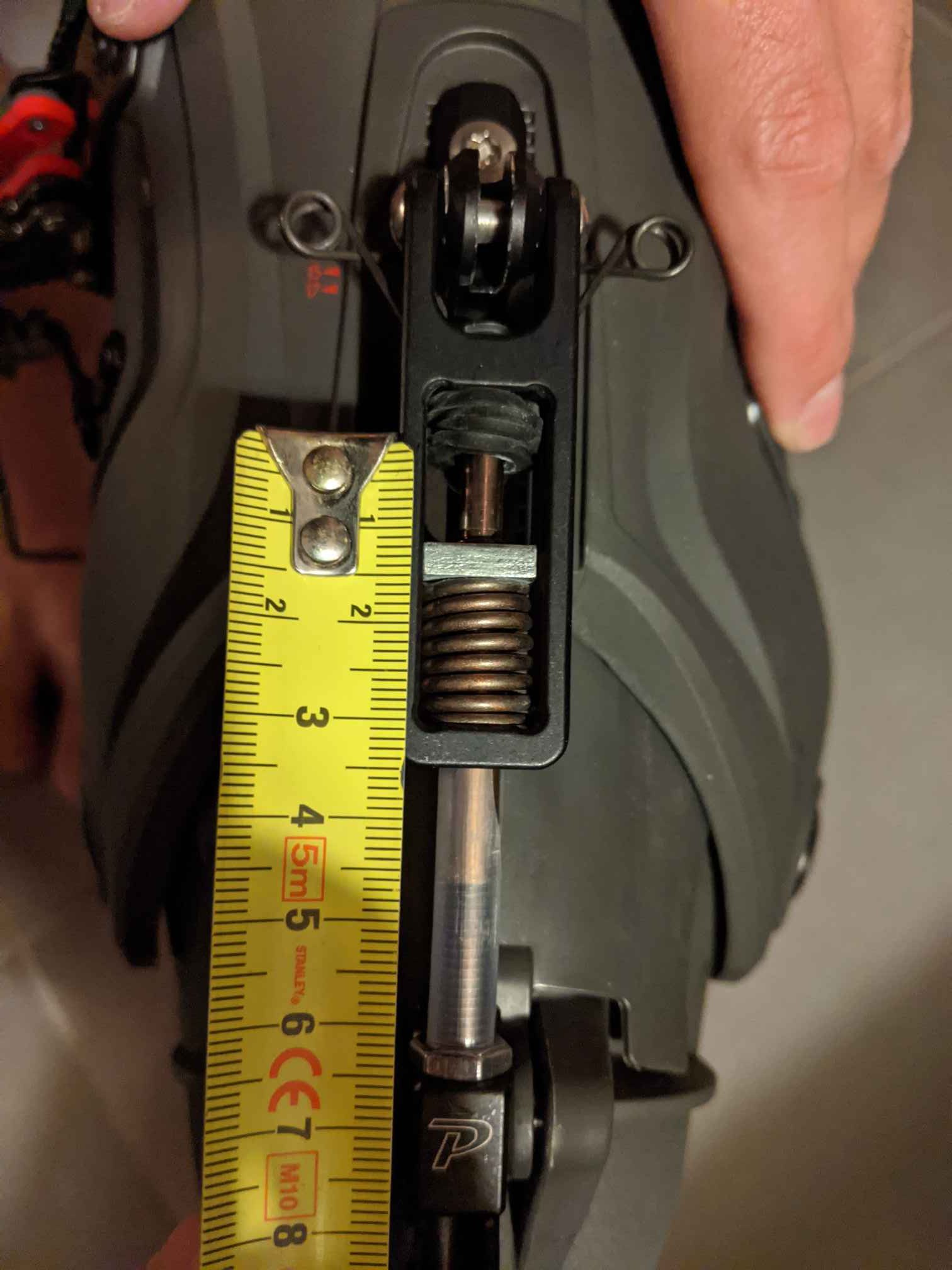 Sinon concernant la course du levier Phantom c'est 10-11 mm mais c'est suffisant, en tout cas pour moi. Pied dans la chaussure il faut vraiment que je flechisse à fond pour arriver en butée. Cependant le collier de la backland pro étant assez souple, peut être qu'avec un collier en carbone il faudrait plus de course, difficile à dire.