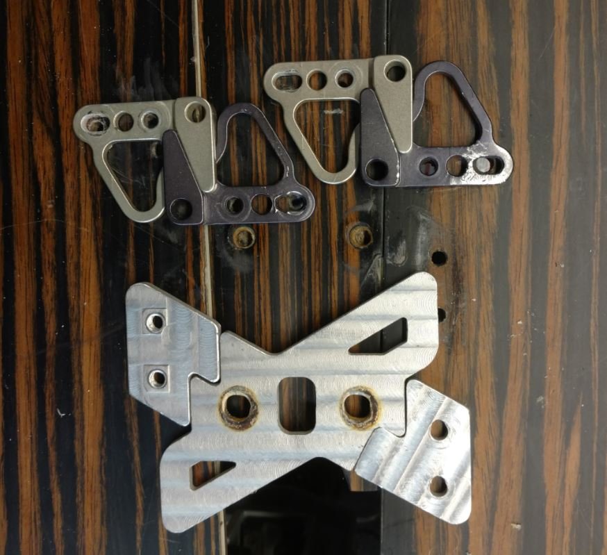 la pièce alu que j'ai fait s'est tordue lors de secouages juste a l'axe de l'assemblage et du coup le crochet de gauche est passé dessous. Alu trop souple je vais faire découper des pièces en inox ( laser).