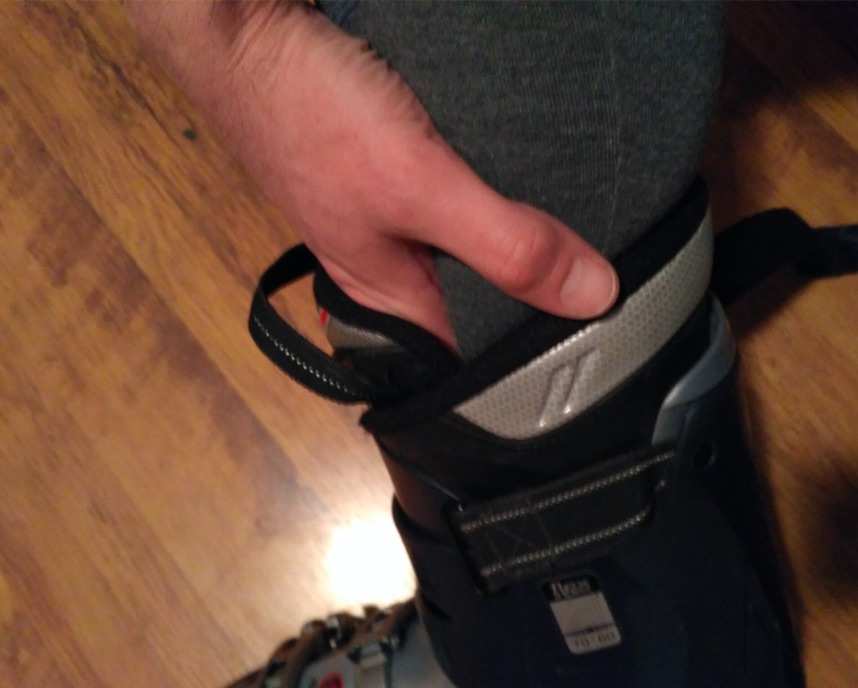 No you should be held all the way up inside the boot..Its better to have a full contact with the boot. A solution to not feel crushed inside the shoe, is to keep them not too tight.