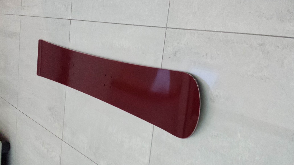 Le topsheet est un abs blanc peint couleur rouge. Possibilité moyennant un surplus de substitué ce topsheet par un topsheet sublimé avec une vrai déco (j’en ai quelques-unes à proposer à l’image de la dernière 125) Le dessus a quelques rayures et coups, les carres et la semelle sont impeccables.