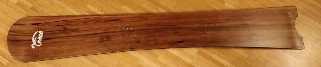 Facts: Built in 2015 it is a handmade Pogo board made in Germany with a beautiful wood surface. It has a length of 156 cm, width middle: 190 mm; width front: 247 mm; width back: 252 mm; edge: 142 cm; radius: 7.5 cm; Nose Lift: 130 mm; Tail Lift: 50 mm; Stance: 42-50 cm.