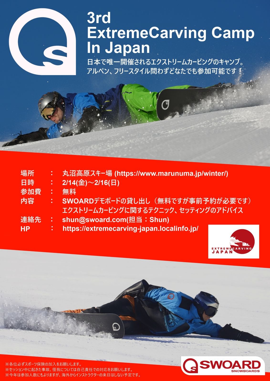 Au moins 2-3 instructeurs Swoard seront présents à chaque événement. Le team Swoard sera au complet avec 5 instructeurs durant l'événement principal "ExtremeCarving Session" à Zinal.
