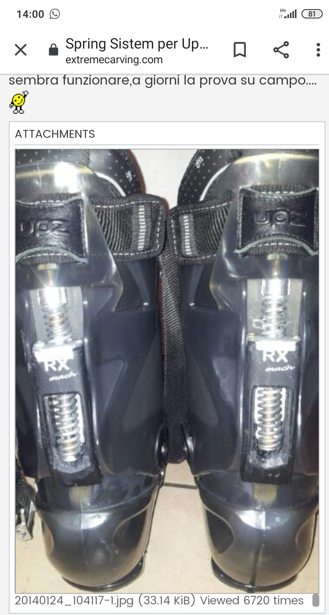 E lo sai perché ? Perché Drupi non ha copiato ne il sistema di Arnaud ,che è completamente differente, ti ricordo che dovevi fare 4 fori sullo scarpone ne quello originale UPZ e lo sai perché? Perché l' ho fatto io un anno prima di conoscere Drupi. Non volevo forare gli scarponi e ho pensato che in qualche modo si doveva prendere spunto dal sistema upz per agganciarlo senza forare ma renderlo libero di lavorare con molle più lunghe. E bene ho preso un vecchio sistema upz l ho completamente modificato e l' ho fatto funzionare con le molle più lunghe. Avevo anche messo sul forum tutto il procedimento di modifica, ti dirò ne aveva attinto anche un utente di nome Diuk. Incontrai Drupi per caso l'anno dopo con Acss montato sui suoi rc10 , vide il mio sistema e mi propose di farmelo simile ma in acciaio. E così fu, tutto il resto è storia dei nostri giorni.