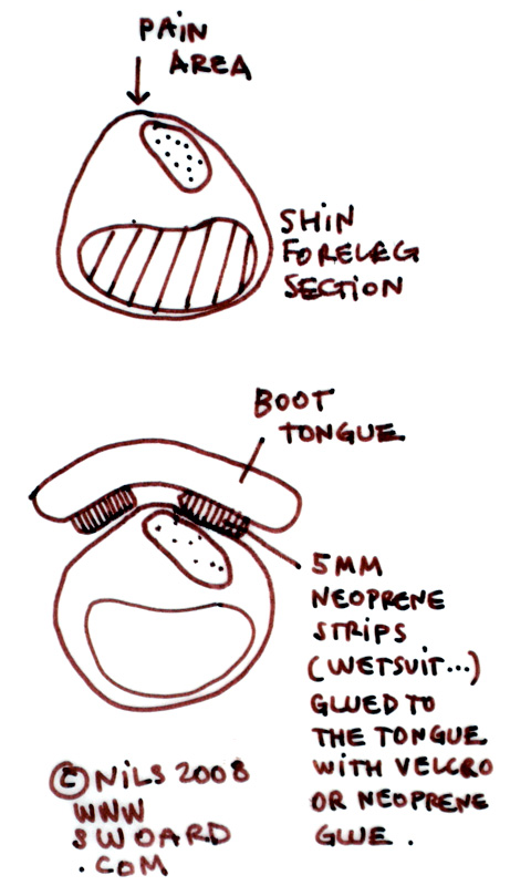 sore shins: easy to solve with this trick i used with previous boots that were painful in the same area ( have thin forelegs...) just made this little drawing to explain quicker